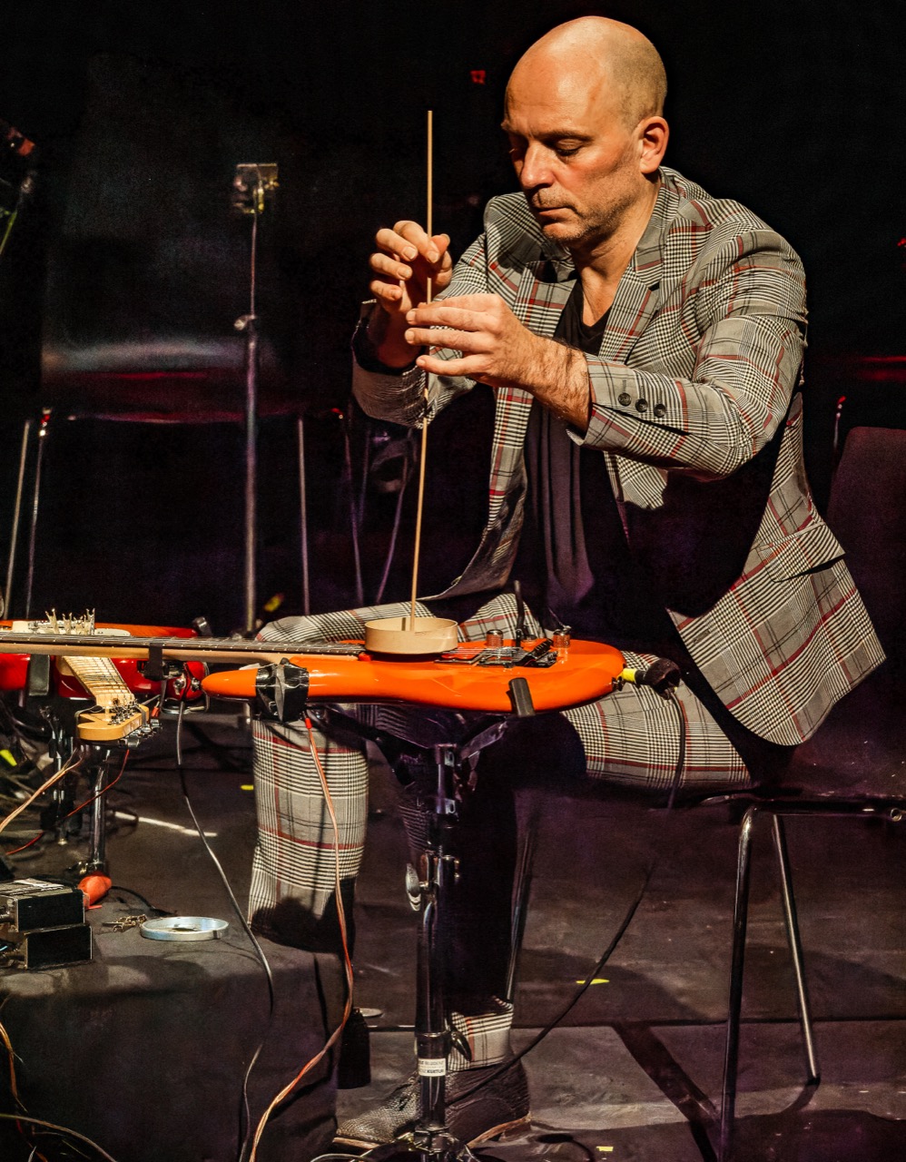 The Autophagy cycle consists in a series of three works exploring the performative potential of self-regulating acoustic systems and hybrid instruments. Each piece investigates feedback as a compositional and performative force, using electro-mechanical augmentation to transform conventional instruments into unpredictable sonic agents. The cycle includes: