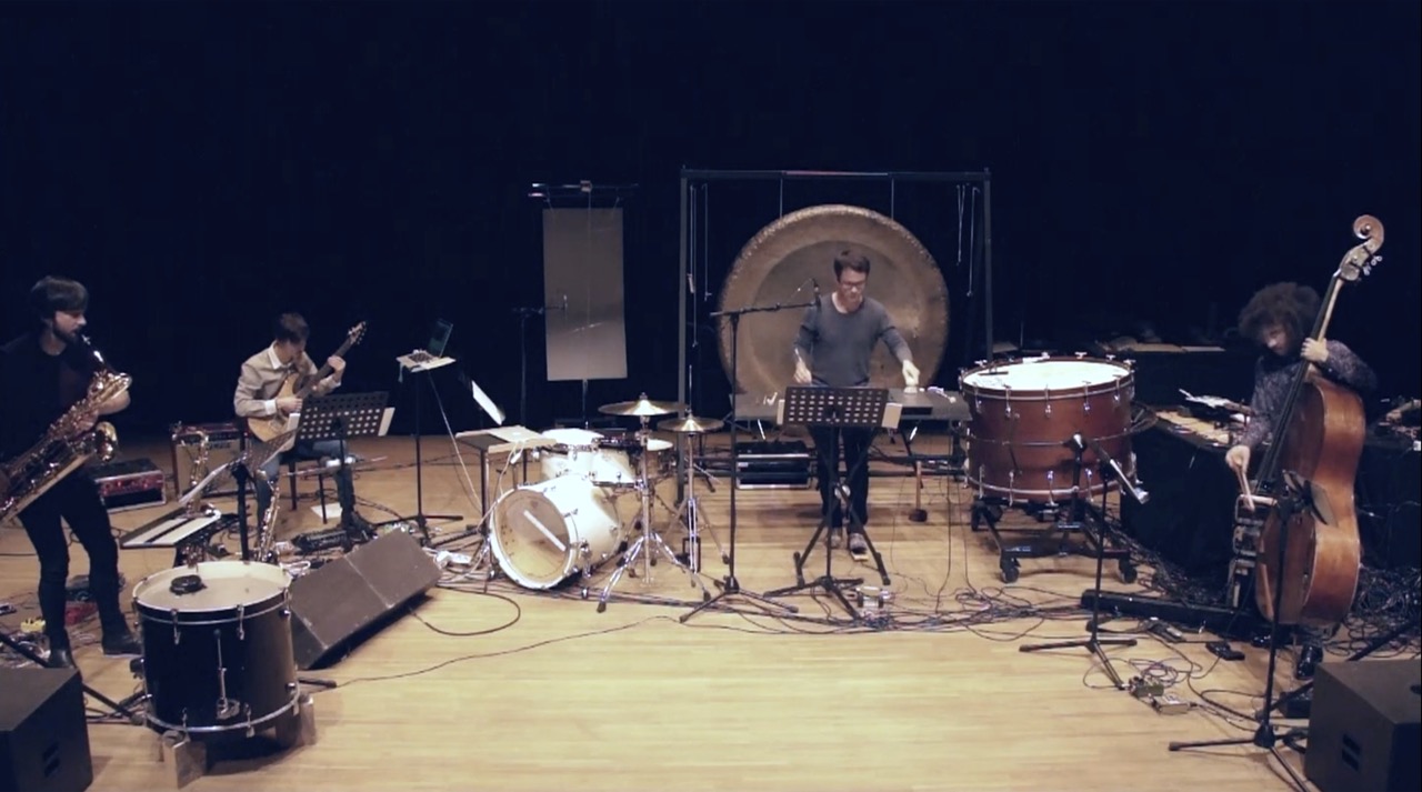 A quintet for augmented baritone saxophone, electric guitar, percussion, double bass, and live electronics. The piece integrates improvisation and feedback systems to explore instability and allow for different versions to emerge every time. The performance process involves working with specific performers, who contribute to the final outcome through improvised sections. The electronics and acoustic instruments form a self-modifying ecosystem, with feedback loops between players, devices, and even performance space. The work challenges conventional notions of reproducibility and emphasizes the living nature of sound.